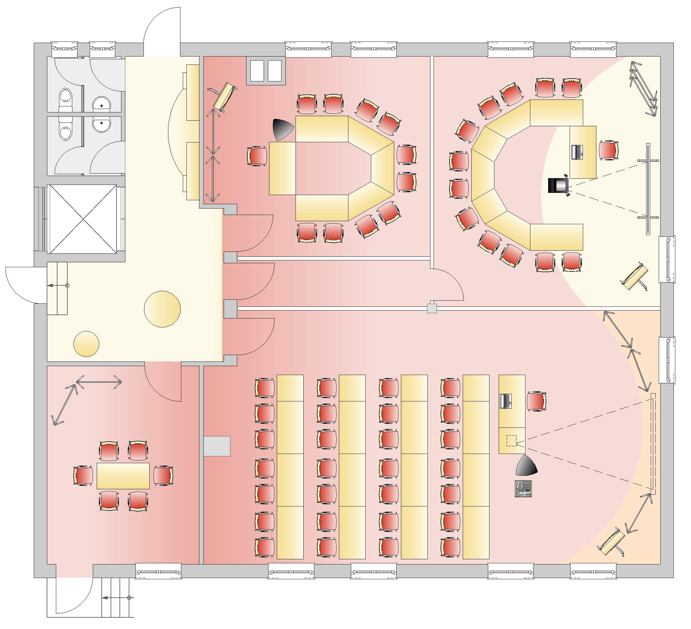 Vermeiden Sie eintönige Darstellungsformen und variieren Sie zwischen unserer Ausstattung und unserer modernen Tagungstechnik. Nutzen Sie beispielsweise das Flipchart sowie den Beamer um Ihre Vorträge abwechslungsreich gestalten zu können.