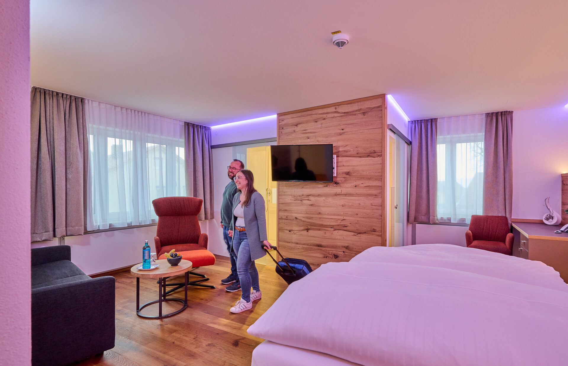 Individuelles Ambiente und persönlicher Charme zeichnen unsere Einzel-, Doppel- und Mehrbettzimmer sowie unsere Suiten aus. Die Ausstattung reicht von Föhn und Kosmetikspiegel über den kuscheligen Frotteemantel an der Rezeption bis hin zum schnellen Internetanschluss. Nicht zu vergessen die moderne Satelliten-TV-Anlage und das eigene Telefon.